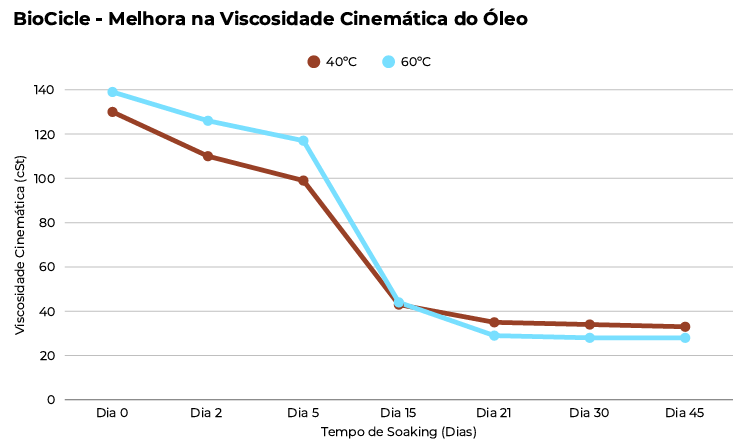Alcançamos uma significativa redução na viscosidade do petróleo cru, tanto em ambiente simulado em laboratório, quanto em testes reais de campo (na Bacia Onshore do Espirito Santo – Brasil), com melhor aproveitamento em soaking de 15 a 21 dias.